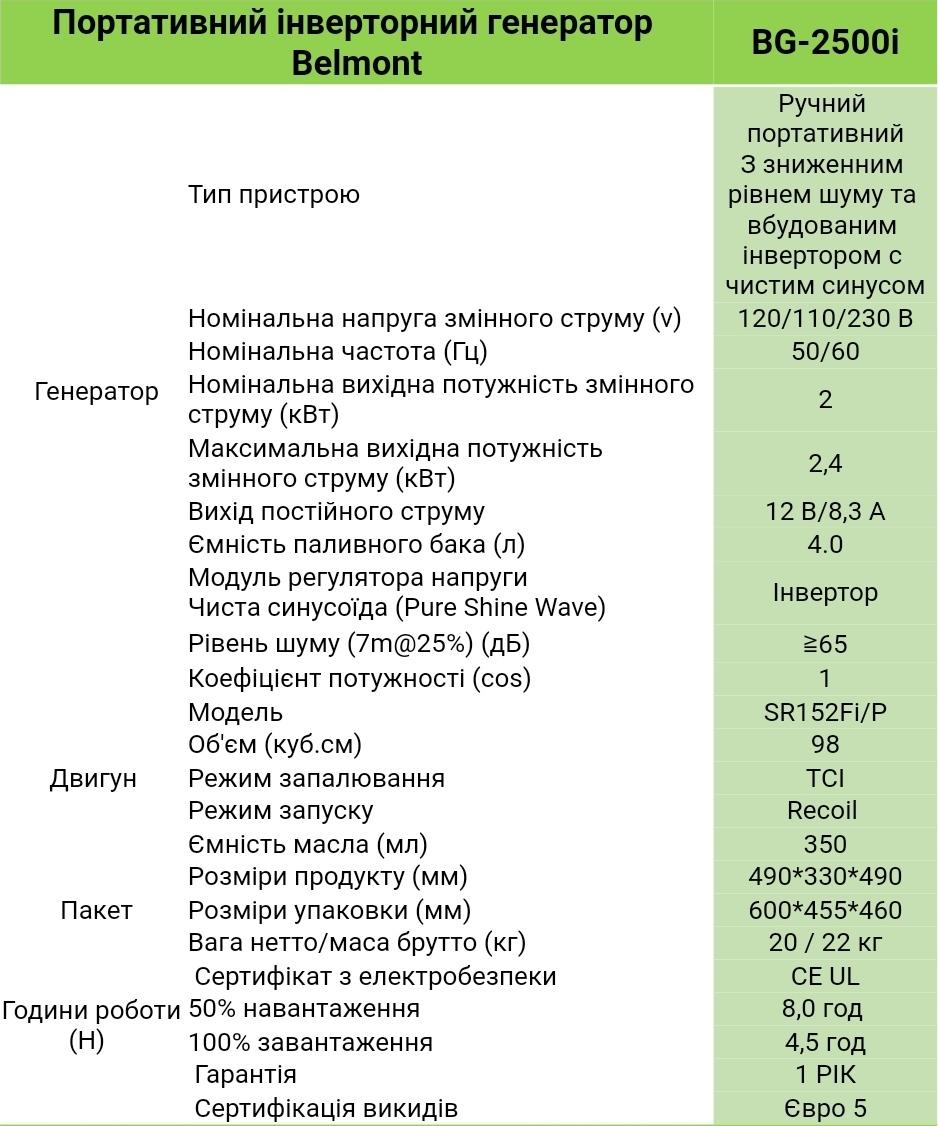 Ручной портативный генератор Belmont BD-2500i с пониженным уровнем шума и встроенным инвертором с чистым синусом.